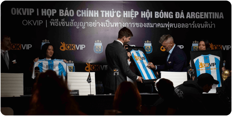 สมาคมฟุตบอลอาร์เจนตินา (AFA) ซึ่งประสบความสำเร็จอย่างยิ่งใหญ่ในการแข่งขันฟุตบอลโลกและโคปาอเมริกา ได้ร่วมมืออย่างเป็นทางการกับ OKVIP - แพลตฟอร์มพันธมิตรแบรนด์ความบันเทิงออนไลน์ชั้นนำของเอเชีย ความร่วมมือนี้ได้รับการประกาศอย่างเป็นทางการในเดือนมิถุนายน 2024 นับเป็นก้าวสำคัญในวงการเกมออนไลน์ พร้อมมอบประสบการณ์ที่น่าตื่นเต้นและสร้างสรรค์ให้กับแฟนฟุตบอลและชุมชนเกมทั่วโลก